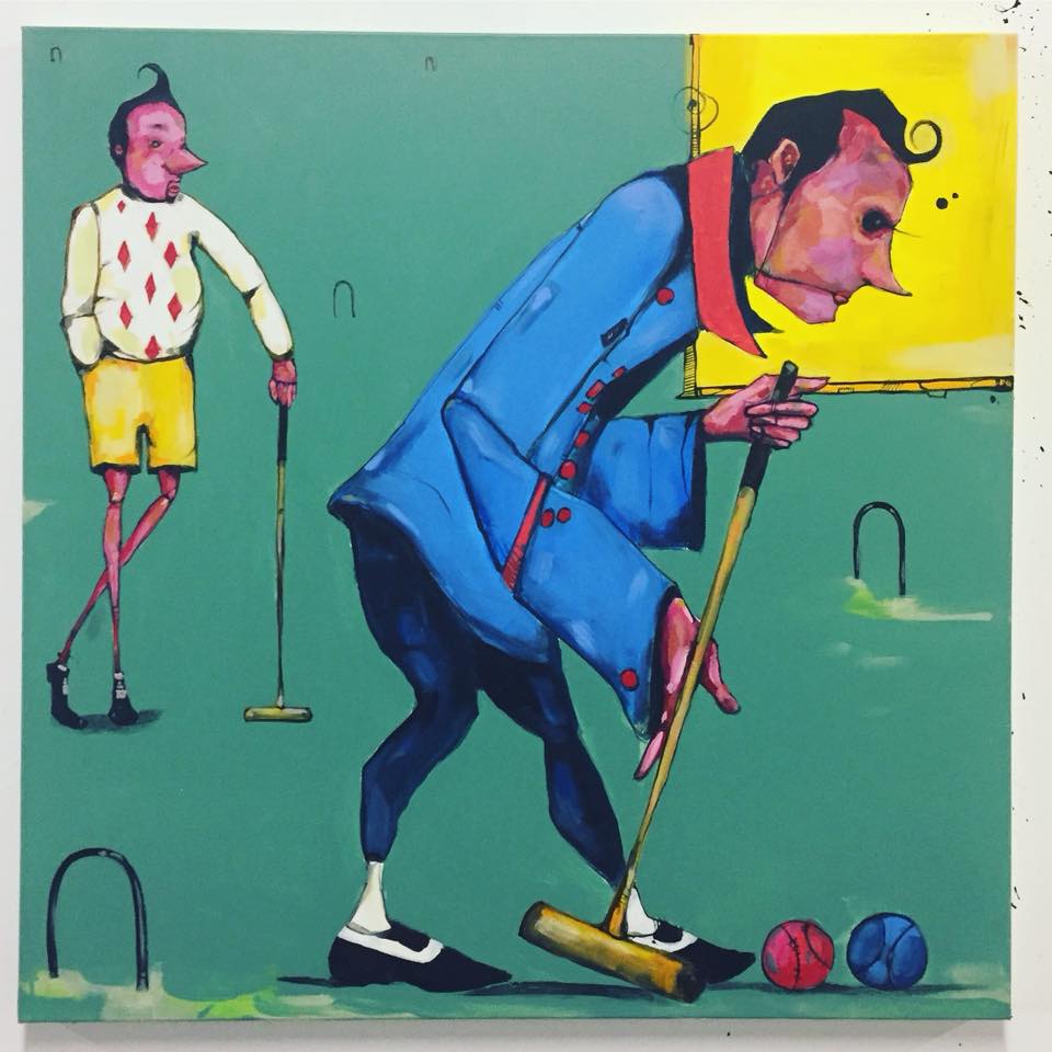 I learned of the term when I was at school at SAIC. It seemed to resonate with what I wanted to do with my work. And especially as a printer, finding imperfections in a series of repetitions was almost a way to justify the mistakes that were made in the process. There could be a smudge of ink on some of the prints, or the registration could be off, or there could be something serendipitous that happens and there’s an overprint that looks awesome or there could be a pull that has excess ink from another color that makes a really amazing effect. As a painter as well, a canvas is whatever you want it to be. So how could there be repetition in a painting? In painting, I think I try to channel the term by creating a sense of immediate discomfort. That could be the background, or the foreground is literally me painting outside the lines. Speaking for myself it’s usually a series of subjects that I use and distorting them or changing an approach somehow that breaks away from the norm I created in my work.